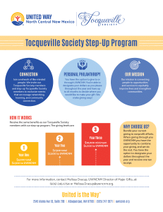 Joining a national network of over 20,000 philanthropic leaders, the Tocqueville Society members of UWNCNM are dedicated to fostering opportunities for everyone in our region. Locally, our 261 members have generously contributed an average of $19,070 each.